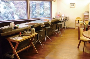 店内には大きな窓があり、カウンター越しにゆっくりと流れる辺春川が一望できます。