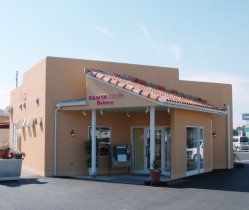 サンタカフェ・ベーカリーの薄い赤褐色の壁は、アメリカ南部にあるサンタフェの街並みをイメージしたもの。南国特有の明るい雰囲気と、独特の食文化を持つサンタフェを意識して作るパンは、バリエーション豊かで日差しのようにあたたかい、やさしさいっぱいの手作りパンです。